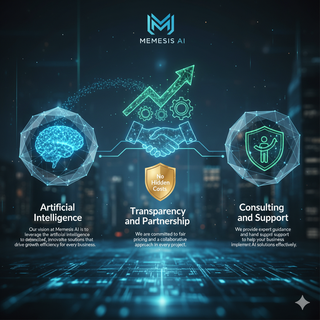 Our vision at Memesis AI is to leverage the power of artificial intelligence to deliver personalized, innovative solutions that drive growth and efficiency for every business.